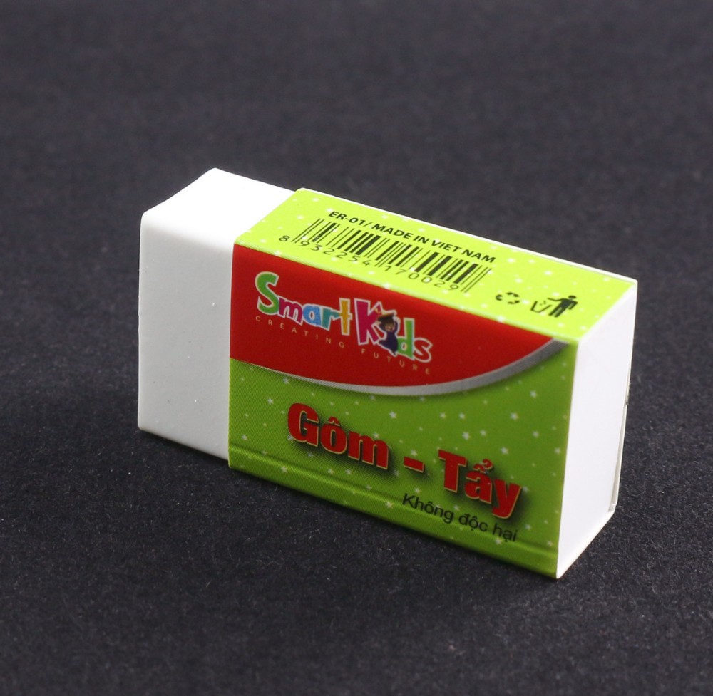 Gôm tẩy Smartkids ER-01 đã được tối ưu một cách tốt nhất cho việc gôm chì, vì thế tất cả các sản phẩm gôm tây Smartkids đều có thể dễ dàng gôm sạch sẽ, không để lại các vệt đen trên giấy cũng như để lại rất ít vụn. Ngoài ra với Gôm tẩy Smartkids, bạn sẽ không phải lo ngại việc gôm làm rách giấy hay gôm bị dơ tập.