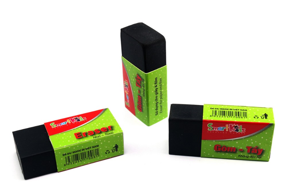 Gôm tẩy Smartkids ER-04 đã được tối ưu một cách tốt nhất cho việc gôm chì, vì thế tất cả các sản phẩm gôm tây Smartkids đều có thể dễ dàng gôm sạch sẽ, không để lại các vệt đen trên giấy cũng như để lại rất ít vụn. Ngoài ra với Gôm tẩy Smartkids, bạn sẽ không phải lo ngại việc gôm làm rách giấy hay gôm bị dơ tập.