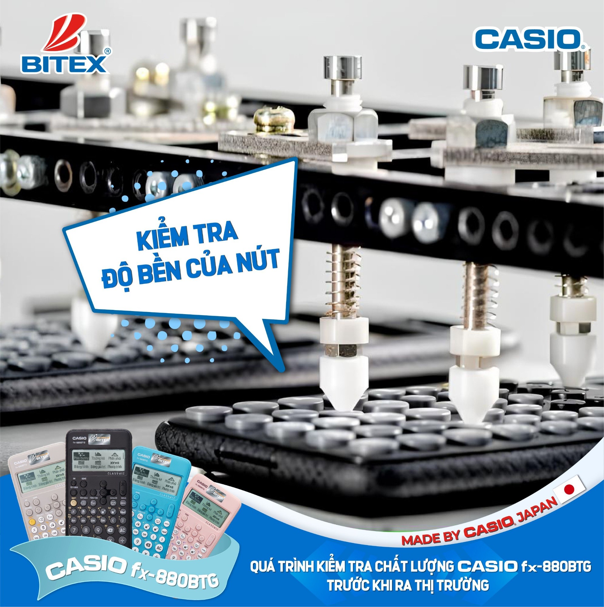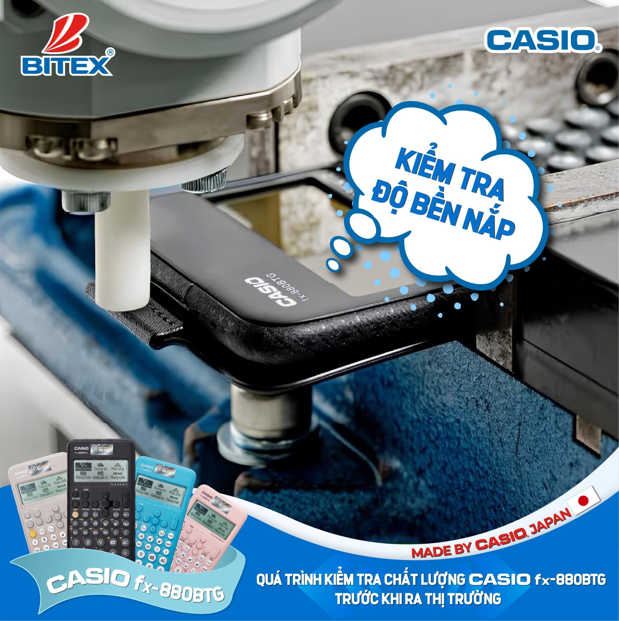 Có thể nói, CASIO Fx-880BTG là sản phẩm được phát triển và sản xuất với sự tập trung tối đa về chất lượng bởi CASIO Japan, cam kết bảo hành 7 năm và 1 đổi 1 trong năm đầu tiên, sẽ là người bạn đồng hành đáng tin cậy của các em học sinh trong mùa thi tốt nghiệp trung học phổ thông và mùa tựu trường năm 2024.