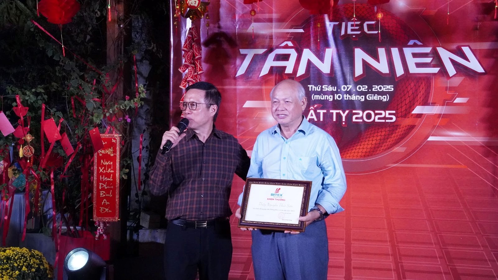 Tại đêm tiệc, Chủ tịch Nguyễn Xuân Dũng đã đại diện Công đã đại diện Công ty ty BITEX gửi lời tri ân đến Thầy Nguyễn Thái Sơn, người đã đồng hành cùng BITEX gần 25 năm. Với sự tận tâm và những đóng góp quý báu, thầy đã không ngừng đưa ra những cố vấn chuyên môn giúp công ty phát triển, tạo nhiều dấu ấn trong lĩnh vực giáo dục. Sự cống hiến của thầy là một phần quan trọng trong hành trình vươn xa của BITEX.